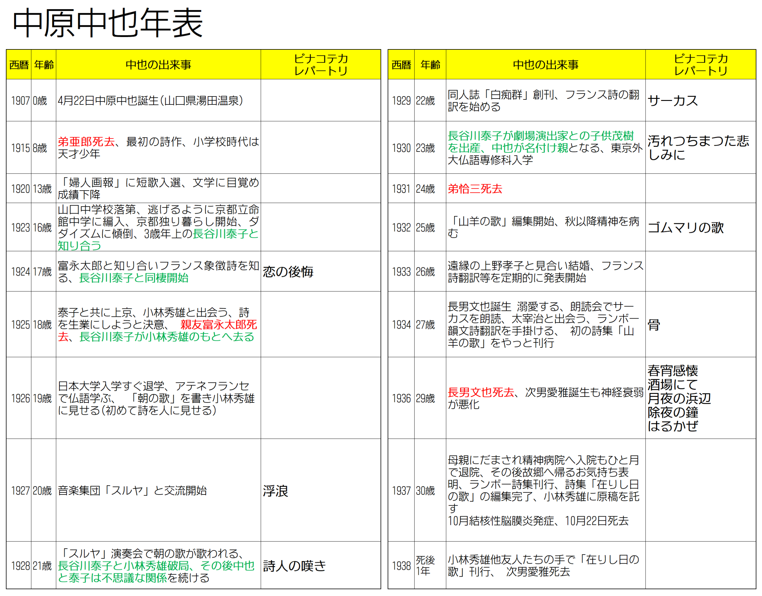 中原中也について第二回音詩之道の小冊子に掲載するために、簡単な年表を作ってみました。
